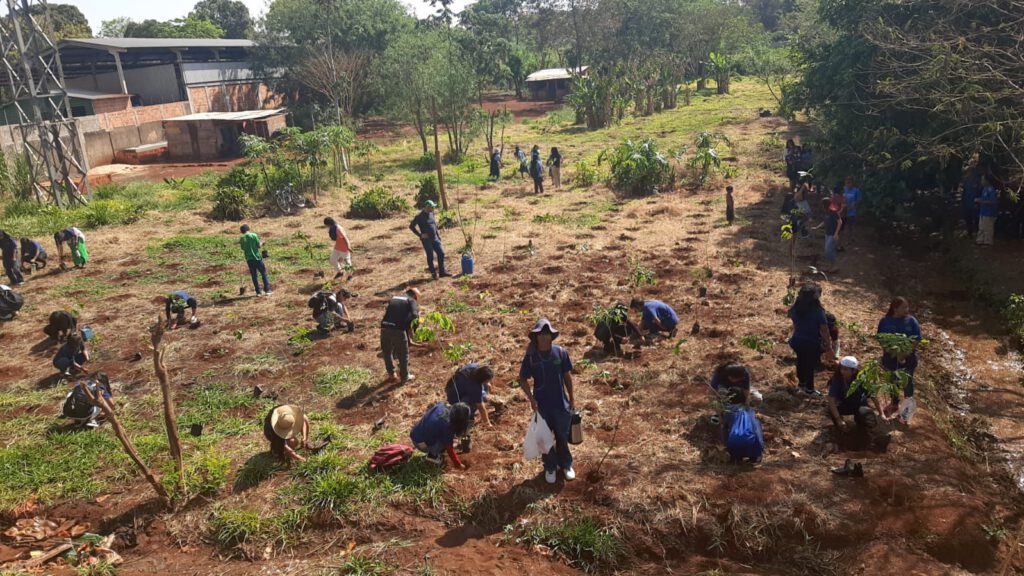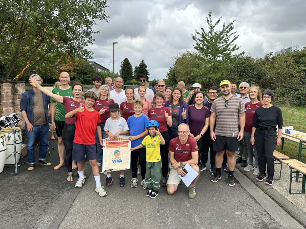 On the 21st of September is the tree day in Brazil. Since the students of our project www.nascenteviva.com had other events on this day, we anticipated the action for the 05.09.24. Like always, a social planting day. As a solidary action we ran on the 22.9 #runningfortheplanet2024 in Frankfurt. Before the planting all people involved, specially the project “environmental agents”, students from the partner school in the village, talk about the importance of caring for the environment.